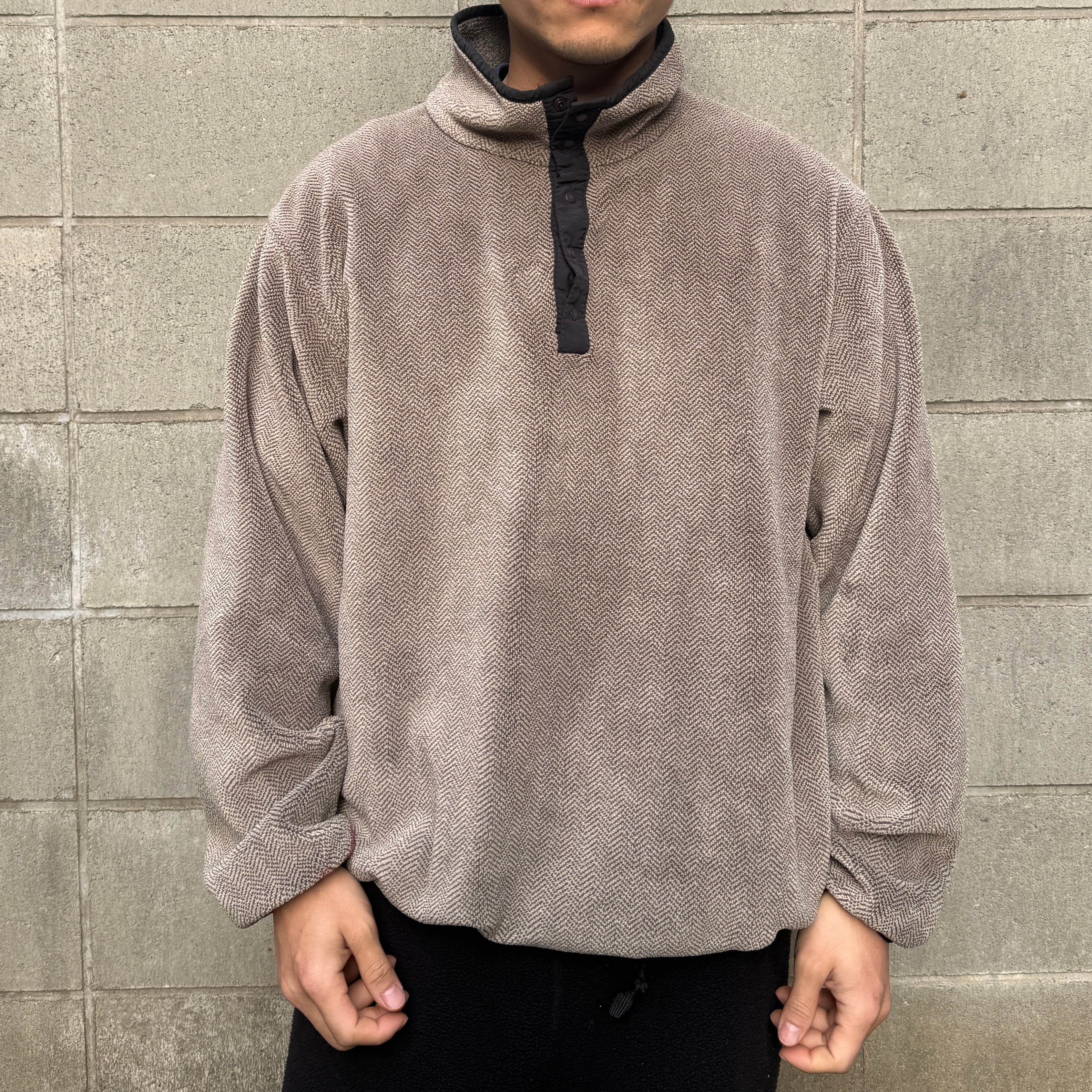【XL程度】90s USA製 LANDS’END Snap-T Pattern Fleece Pullover